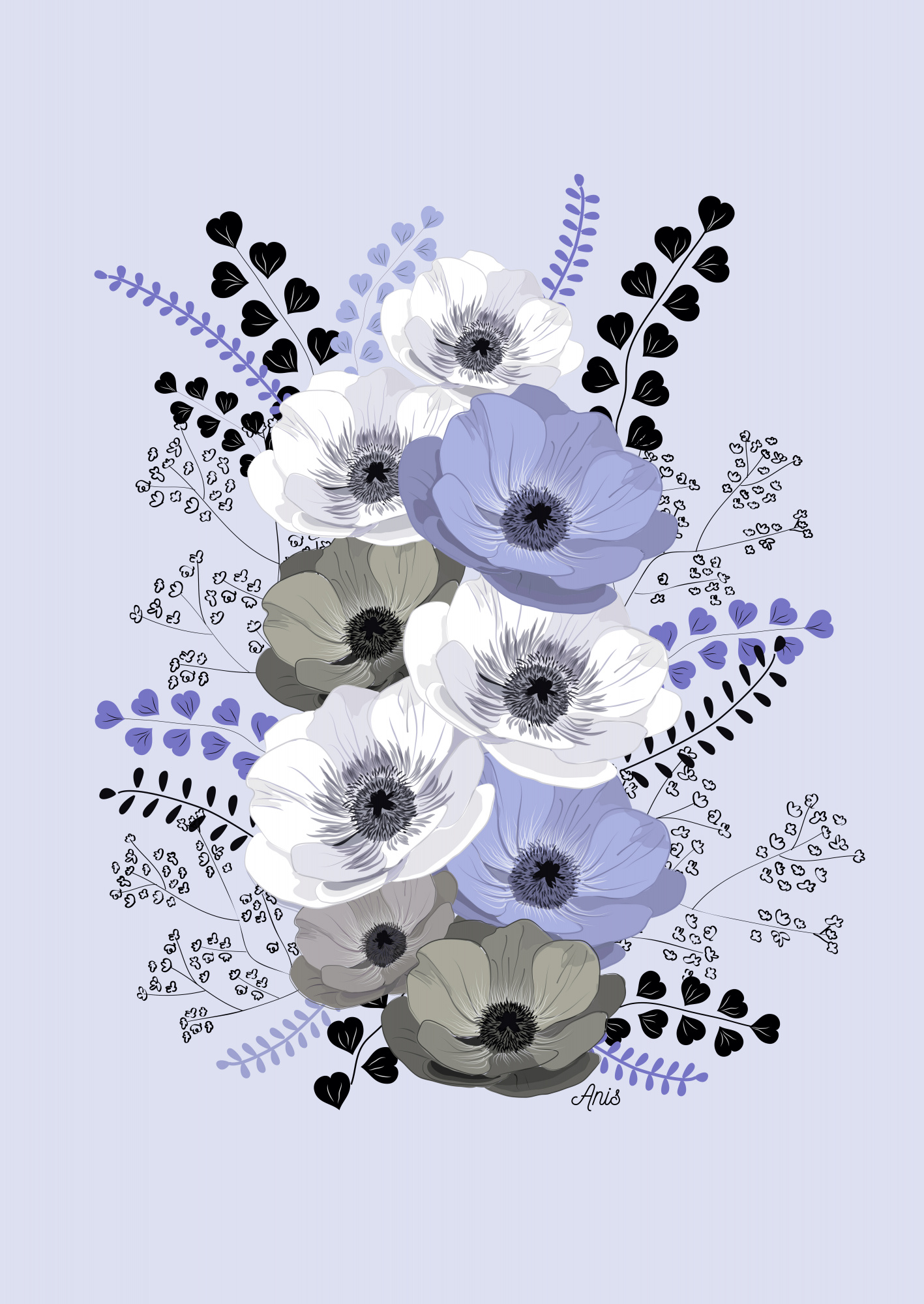 Plakat – Anemones Floral Bouquet Blue